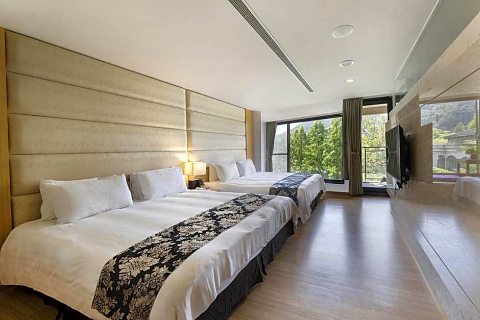 The hot tub is a top feature of this quadruple room. The spacious quadruple room features air conditioning, a tea and coffee maker, a balcony with garden views as well as a private bathroom boasting a bath. The unit has 2 beds.